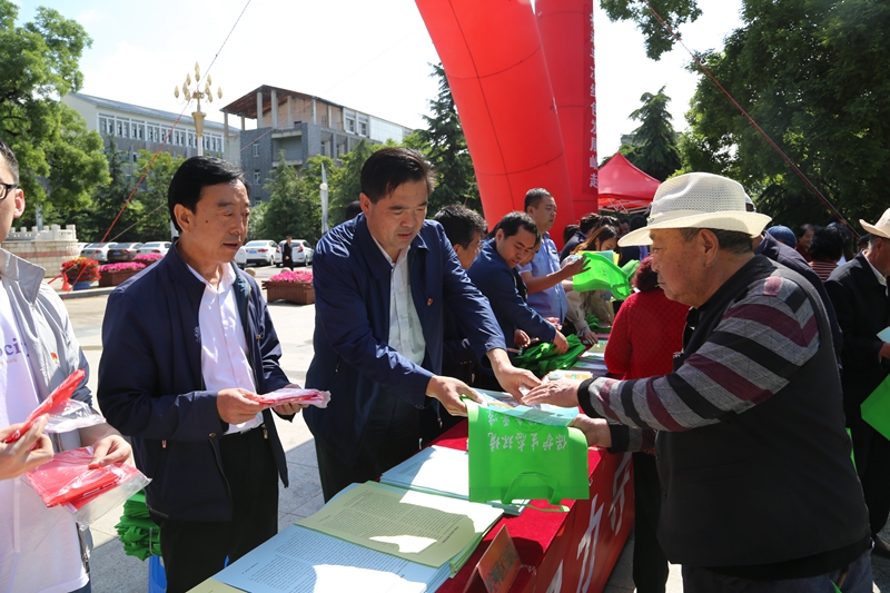 (局領(lǐng)導(dǎo)向現(xiàn)場群眾發(fā)放生態(tài)環(huán)境保護宣傳資料)